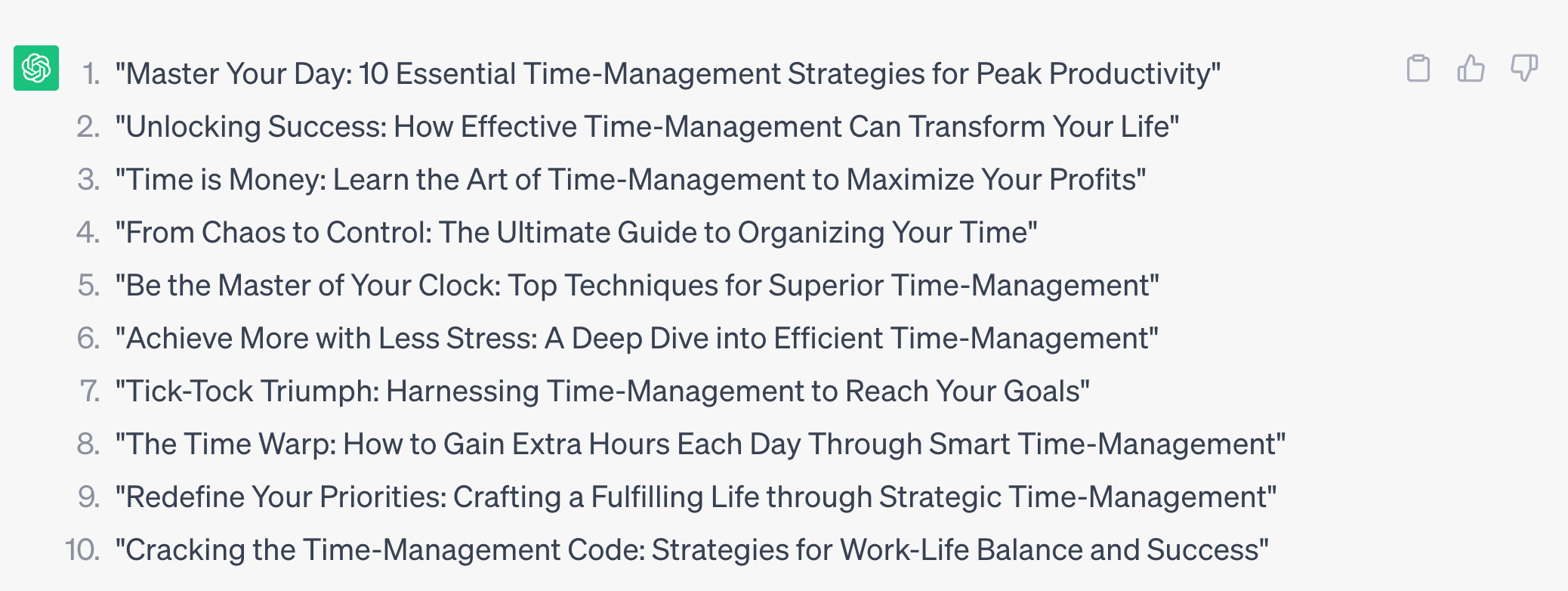 Write 10 headlines about time-management (۱۰ تیتر درباره مدیریت زمان بنویس)